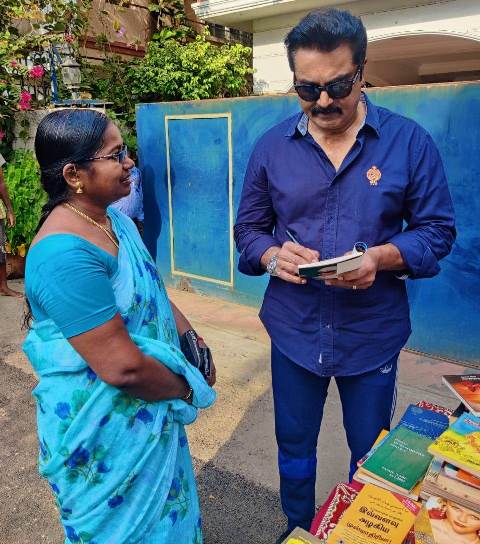 மக்களுக்குப் புத்தகங்களை இலவசமாக வழங்கிய நடிகர் சரத்குமார்