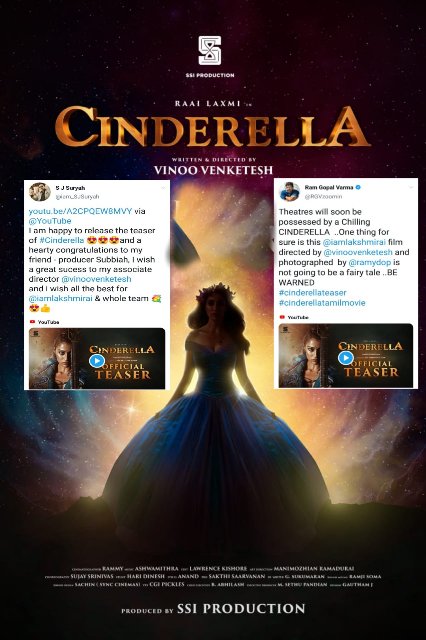 இது ஒரு பேய்ப் படம்தான். ஆனால் வழக்கமாக நிர்மாணிக்கப்பட்டிருக்கிற சூத்திரங்களில் இருந்து விலகி புதுப் பாணியில் புதுவித பாதையில் பயணிக்கிற கதையில் உருவாகியிருக்கிற படமாக ‘சிண்ட்ரெல்லா’ இருக்கும். இந்த ‘சிண்ட்ரெல்லா’வை ரசிகர்கள் அனைவரும் ரசித்து கொண்டாடுவார்கள் என்று நம்புகிறேன்..” என்கிறார் இயக்குநர் வினோ வெங்கடேஷ்.