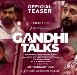 இந்த ‘காந்தி டாக்ஸ்’ என்கிற மவுனப் படத்தில் நடிகர் விஜய் சேதுபதி, அதிதி ராவ் ஹைதாரி, அரவிந்த்சாமி மற்றும் பலரும் நடித்துள்ளனர். இயக்குநர் கிஷோர் பாண்டுரங் பலேகர் இந்தப் படத்தை இயக்கியுள்ளார்.