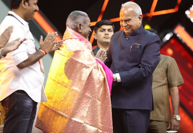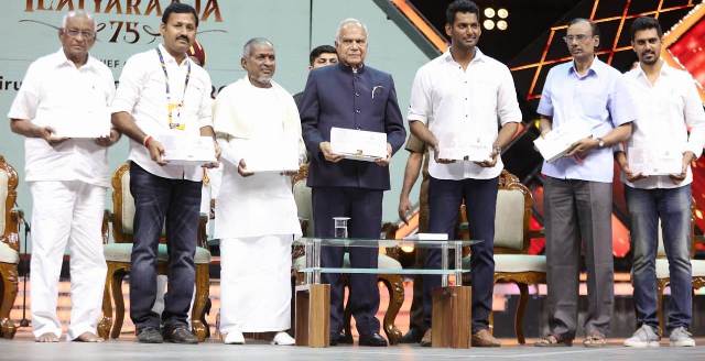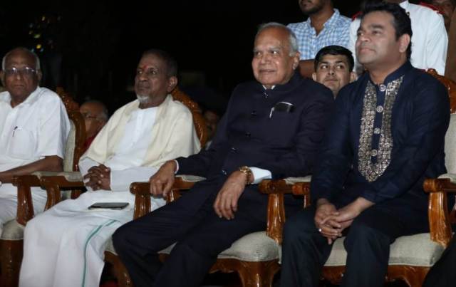 ஆளுநர் பன்வாரிலால் புரோஹித் இளையராஜாவுக்கு பொன்னாடை போர்த்தி பூங்கொத்து வழங்கினார். இளையராஜாவின் சாதனைகள் பற்றிய புத்தகத்தையும் ஆளுநர் பன்வாரிலால் புரோகித் வெளியிட்டார்.
