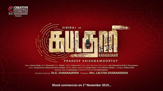 கிரியேட்டிவ் என்டர்டெயின்மெண்ட் அண்ட் டிஸ்ட்ரிபியூட்டர்ஸ் வழங்கும் பிரதீப் கிருஷ்ணமூர்த்தி இயக்கத்தில் சிபிராஜ் நடிப்பில் சஸ்பென்ஸ், எமோஷனல் திரில்லராக உருவாகும் படத்திற்கு இதுவரை பெயர் சூட்டப்படாமல் இருந்தது. தற்போது அப்படத்திற்கு ‘கபடதாரி’ என்று பெயர் வைத்திருக்கிறார்கள்.