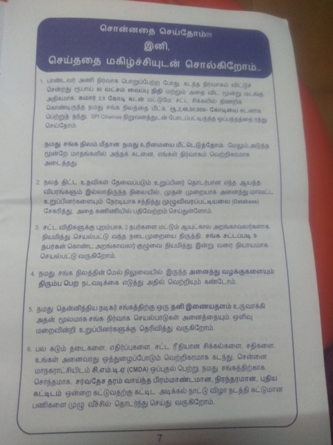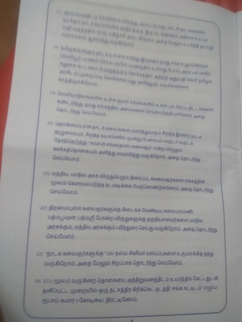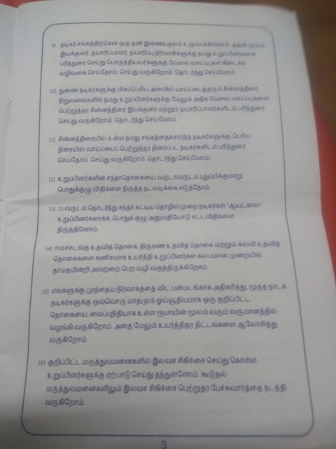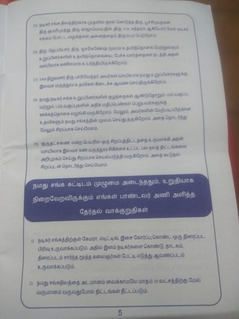 நாளை நடைபெறவுள்ள தென்னிந்திய நடிகர் சங்கத் தேர்தலில் போட்டியிடும் பாண்டவர் அணியினரின் தேர்தல் அறிக்கை இது :