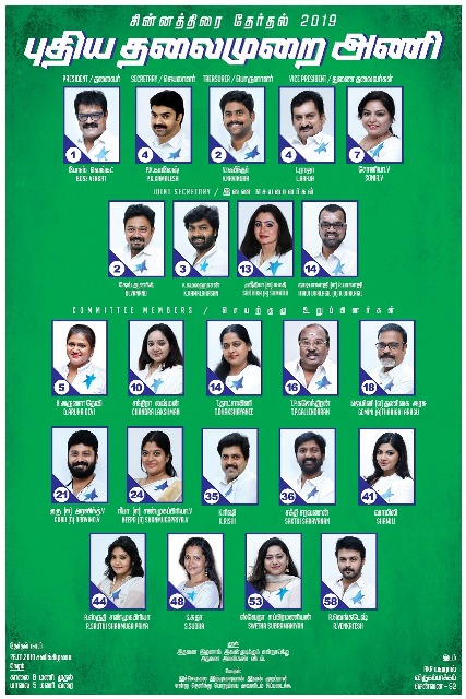 நடிகர் போஸ் வெங்கட்டின் தலைமையில் போட்டியிடும் ‘புதிய தலைமுறை அணி’யின் சார்பில் தலைவர் பதவிக்கு போஸ் வெங்கட்டே போட்டியிடுகிறார்.