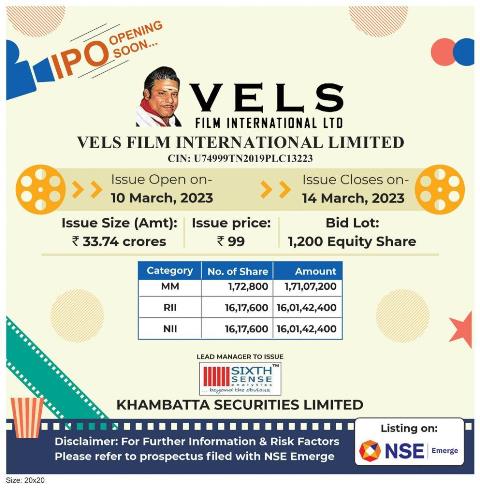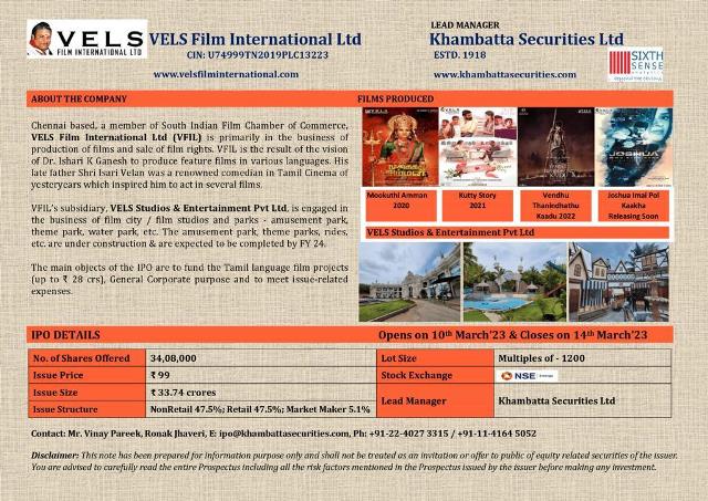 இந்நிறுவனம் முதல் முறையாக பொதுமக்களிடமிருந்து ஐபிஓ மூலம் ரூ.34 கோடி நிதி திரட்டுகிறது. இது திரைப்பட தயாரிப்புக்காக பயன்படுத்தப்படும். மேலும் இந்நிறுவனம் தேசிய பங்குச் சந்தையில் SME தளத்தின் கீழ் பட்டியலிடப்பட்டுள்ளது.